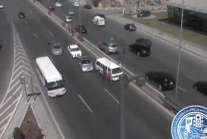 The Traffic Management Center in Lebanon shared a video showing a van crossing the highway from one way to the other and stopping on the fast lane to pick up passengers who met him half way by crossing the highway since there’s no pedestrian bridge around.