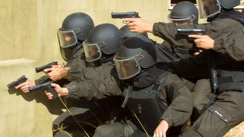 A Lebanese police anti terrorist squad raid on a house in the